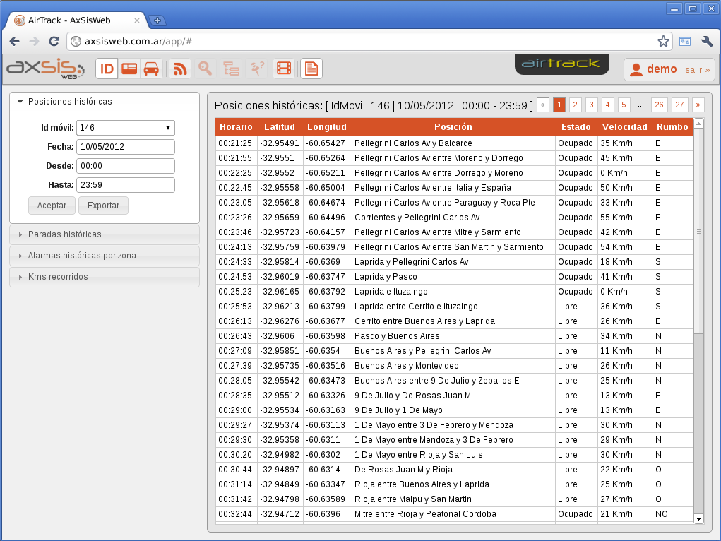 Versión optimizada para celulares y tablets del AxsisWeb. Es muy útil para ver los móviles en tiempo real y su recorrido histórico desde un simple smartphone.